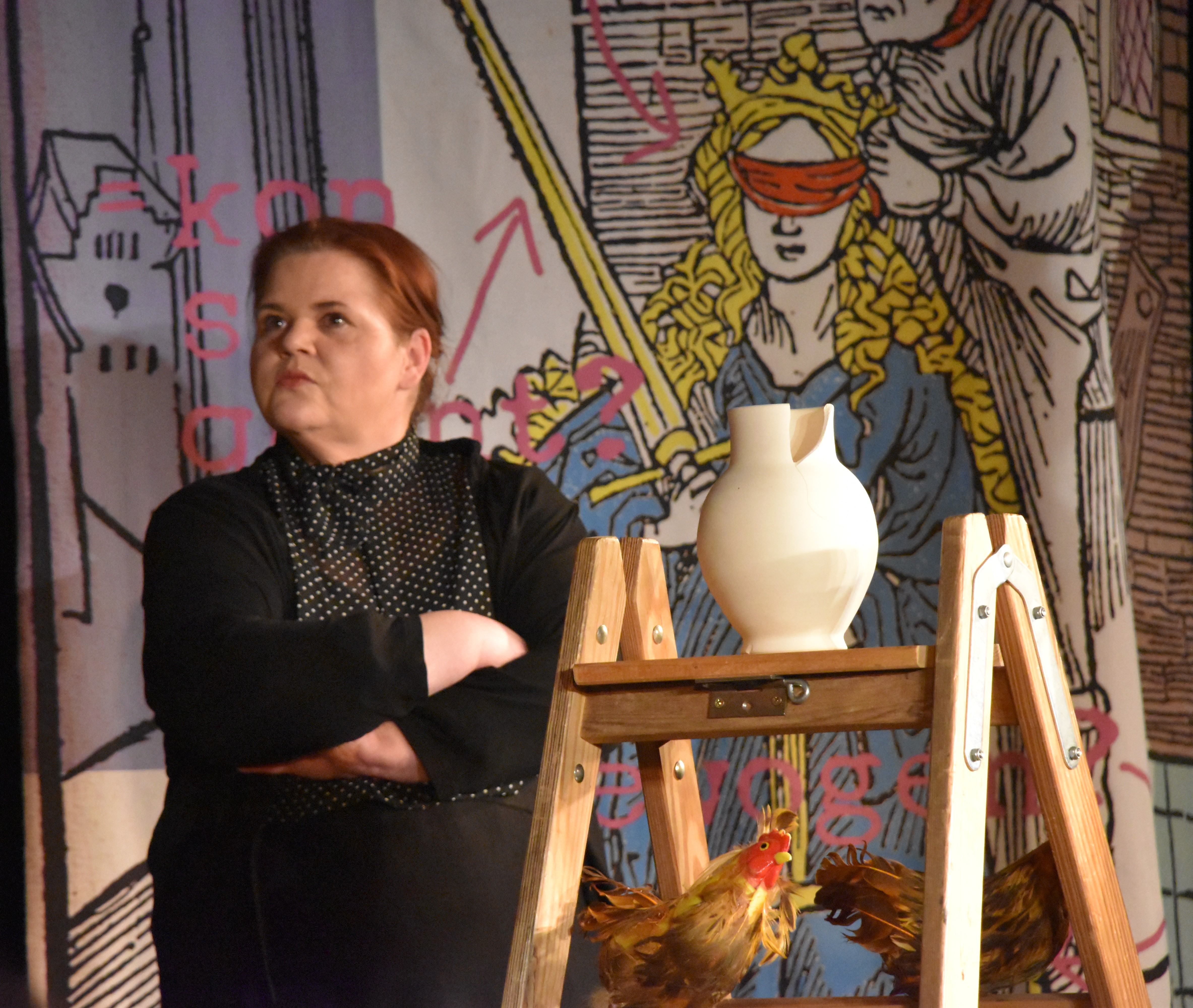 Was Kleists Drama von 1811 zur Komödie macht, ist vor allem die Dreistigkeit, mit der hier vom Patriarchat Macht ausgeübt, Positionen gesichert und Verhältnisse zementiert werden. Die Wahrheit zählt dabei nicht im Geringsten; stattdessen gilt es, unverfroren und skrupellos jede Verantwortung von sich zu schieben. Gestützt von einer Gesellschaft, die scheinheilig mitspielt – stolz vor ihrem kulturellen Erbe stehend und sich vormachend, es würde sie die Gerechtigkeit interessieren.